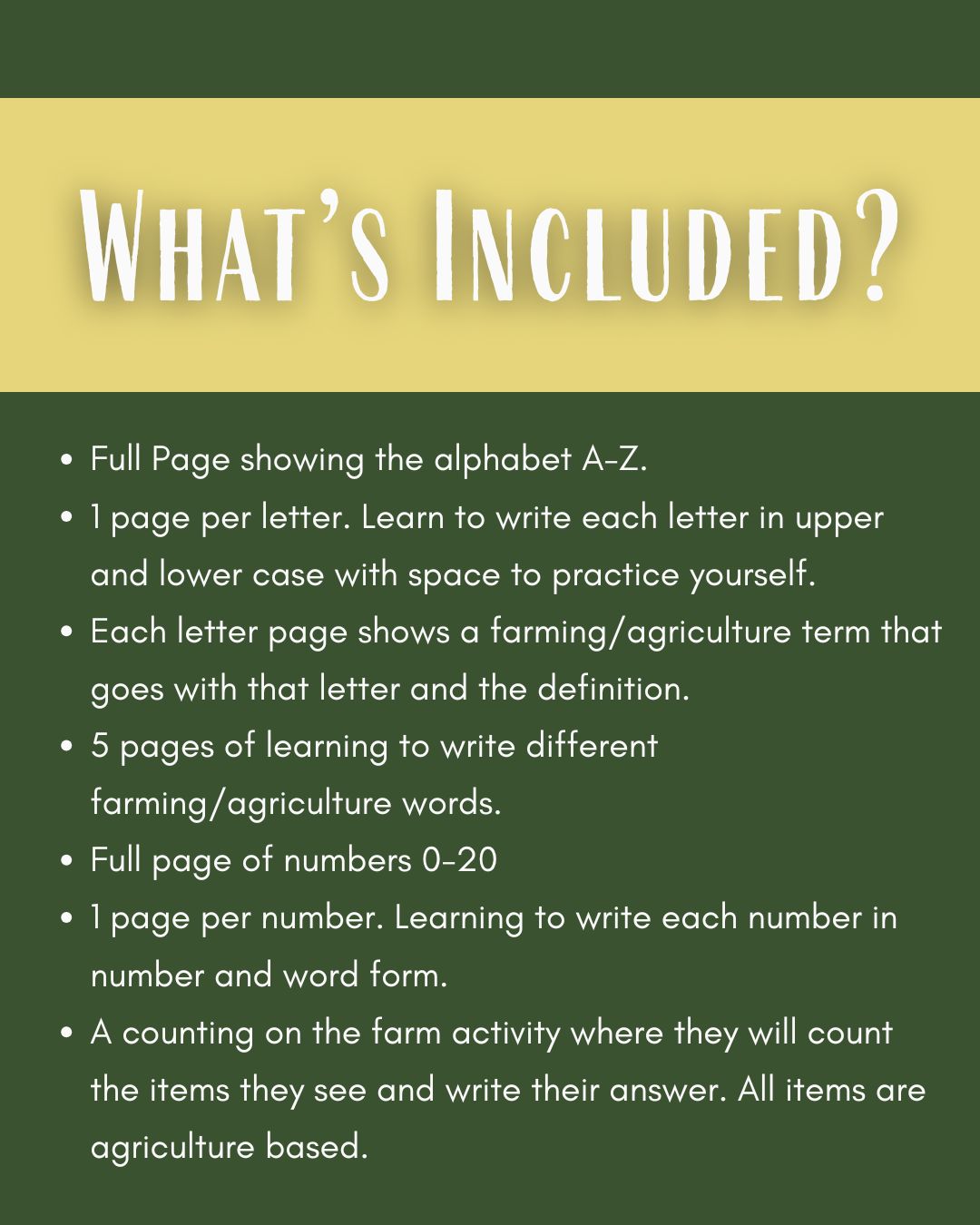 The Farm Kids Workbook is a fun and engaging resource designed to help kids learn while exploring the world of farming and agriculture. Packed with simple activities, writing practice, and farm-themed learning pages, this workbook makes early education exciting and relatable for little ones who love tractors, animals, and country life. Perfect for preschool and early elementary ages, it’s an easy way to blend play with learning at home or in the classroom.